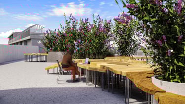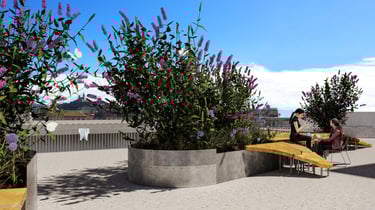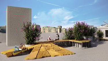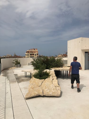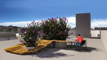 Réalisation du modèle 3D des plans et des images photoréaliste, Dans le cadre du 1% artistique de l’Institut méditerranéen de la ville et des territoires (IMVT). l’artiste Wilfrid Almendra présente « Désiré », un ensemble de sculptures dialoguant avec l’architecture singulière du lieu et faisant écho aux paysages du territoire marseillais. Déployées sur le toit terrasse, les œuvres qui composent cet ensemble forment un environnement accueillant où poésie des formes et poésie du vivant coexistent en harmonie. Faits de pierres calcaires extraites dans la région, deux modules montés sur leurs pilotis de fers à béton et ornés de plantes foisonnantes font office d’espace de travail et de détente. Ne se dévoilant totalement qu’aux esprits curieux, « Désiré » abrite de discrètes sculptures hyperréalistes révélant la présence de limaces, de champignons ou de vêtements, sur lesquels veille un paon en fonte perché sur les hauteurs de l’Institut. Si l’œuvre de Wilfrid Almendra nécessite d’ouvrir les yeux, elle suppose également de tendre l’oreille afin d’écouter le recueil des récits portés par les voix de celles et ceux qui font la vie du quartier. « Désiré » se présente comme un éloge à l’attention, la construction, le partage et la cohabitation entre les êtres, les matériaux et les récits réels ou fictifs, qu’ils soient personnels ou collectifs.