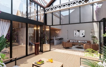 Dans cette réhabilitation d'une usine des années 1930, le projet s'inscrit dans la conservation de sa structure métallique d’origine, préservant ainsi l'identité historique du lieu. La toiture est entièrement refaite à neuf pour accueillir une isolation haute performance et des panneaux solaires, ainsi qu'une verrière en triple épaisseur, permettant de réduire durablement les dépenses énergétiques du loft.