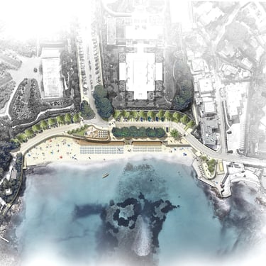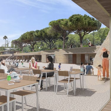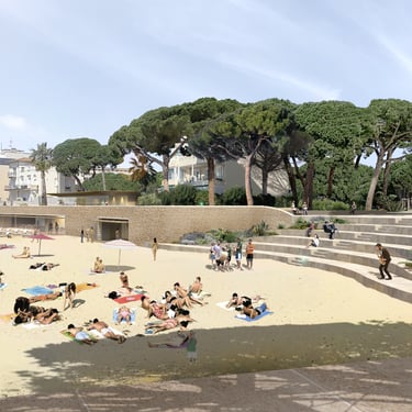 L’enjeu était de retisser le lien entre la ville et l’horizon. En levant les obstacles visuels et en adoucissant le terrain, nous avons dégagé de larges perspectives sur la mer. Que ce soit autour de la place de la Baigneuse ou dans le retour de la pinède vers le rivage, chaque geste cherche à clarifier l’esprit des lieux. Des marches généreuses et des pentes douces rendent l’ensemble accessible à tous, tandis que l’ombre des pins et des essences méditerranéennes invite à la pause.
